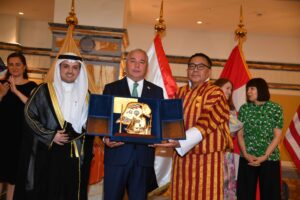 ثم وجّه زبيدوف تحية تقدير لسفير مملكة بوتان، الذي اختتم مسيرة دبلوماسية استمرت أربع سنوات، شهدت خلالها توقيع اتفاقية النقل الجوي التاريخية، وزيارة ملك بوتان للكويت ثلاث مرات، وتوسع الجالية البوتانية لتضم أكثر من 10 آلاف فرد.