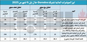 ارتفعت قاعدة عملاء Ooredoo تونس بنسبة 2%، لتصل إلى 7 ملايين عميل في نهاية النصف الأول من سنة 2025. وارتفعت الإيرادات بنسبة 9% لتصل إلى 67 مليون دينار في النصف الأول من سنة 2025، مقارنة بـ 62 مليون دينار في النصف الأول من سنة 2024. كما ارتفع الدخل قبل احتساب الفوائد والضرائب والاستهلاك والإطفاء للنصف الأول من عام 2025 بنسبة 12% ليبلغ 28 مليون دينار، مقارنة بـ 25 مليون دينار في النصف الأول من سنة 2024.