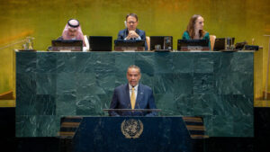 جاء ذلك في كلمة الوزير اليحيا التي ألقاها أمام المؤتمر الدولي رفيع المستوى لتسوية قضية فلسطين بالوسائل السلمية وتنفيذ حل الدولتين في مقر الأمم المتحدة بنيويورك.