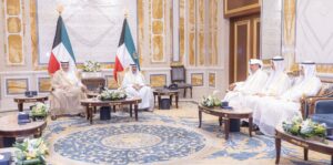 استقبل حضرة صاحب السمو أمير البلاد الشيخ مشعل الأحمد الجابر الصباح حفظه الله ورعاه بقصر بيان وبحضور سمو ولي العهد الشيخ صباح خالد الحمد الصباح حفظه الله – معالي وزير شؤون الديوان الأميري الشيخ حمد جابر العلي الصباح ومعالي رئيس ديوان سمو ولي العهد الشيخ ثامر جابر الأحمد الجابر الصباح وسعادة وكيل الديوان الأميري الشيخ عبدالعزيز مشعل مبارك عبدالله الأحمد الصباح وذلك بمناسبة تعيينهم في مناصبهم الجديدة.
