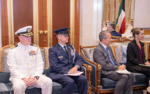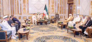 استقبل حضرة صاحب السمو أمير البلاد الشيخ مشعل الأحمد الجابر الصباح حفظه الله ورعاه بقصر بيان صباح اليوم معالي وزير الدفاع الشيخ عبدالله علي عبدالله السالم الصباح وقائد القيادة الأمريكية الوسطى الفريق أول بحري براد كوبر والوفد المرافق وذلك بمناسبة زيارته للبلاد.