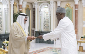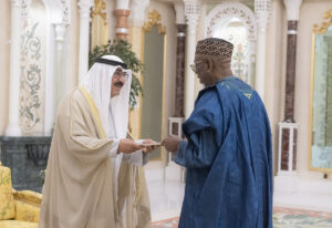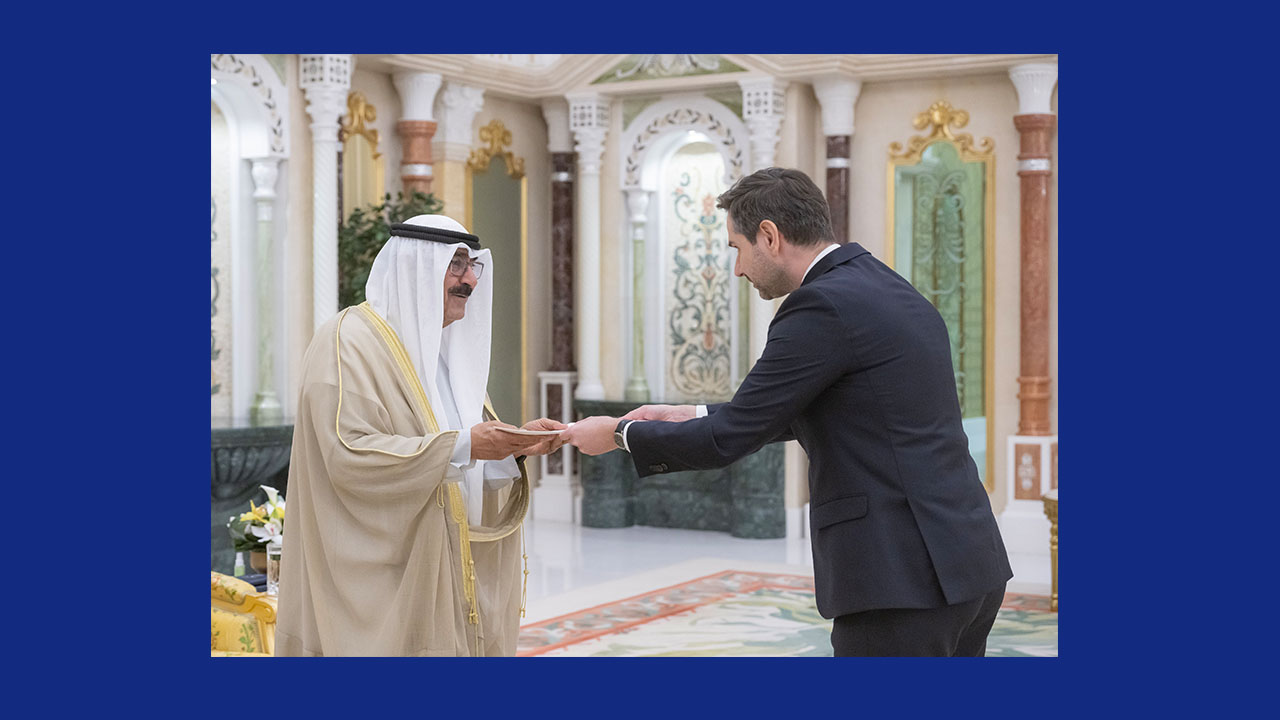 احتفل في قصر بيان بتسلم حضرة صاحب السمو أمير البلاد الشيخ مشعل الأحمد الجابر الصباح حفظه الله ورعاه أوراق اعتماد كل من السفير د. آدم عبده حسن سفيرا لجمهورية النيجر والسفير د. براهيما دياكيتي كابا سفيرا لجمهورية ليبيريا والسفير باديرو أغيمون سفيرا لجمهورية بنين والسفير ميشال جوليوا سفيرا لجمهورية بولندا والسفير حسن سوغو سفيرا لجمهورية السنغال وذلك كسفراء لبلادهم لدى دولة الكويت.