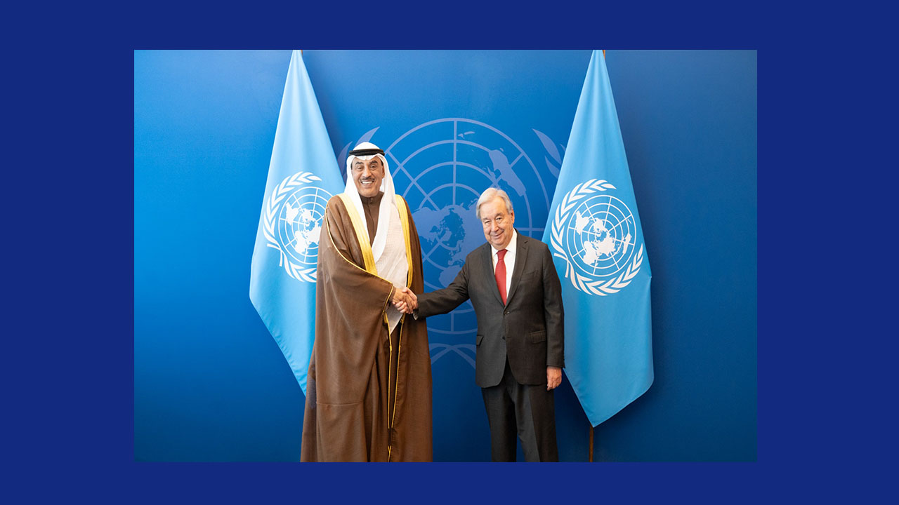 التقى ممثل سمو أمير البلاد الشيخ مشعل الأحمد الجابر الصباح، سمو ولي العهد الشيخ صباح خالد الحمد الصباح، اليوم الأحد، الأمين العام للأمم المتحدة أنطونيو غوتيريش على هامش أعمال الدورة الـ80 للجمعية العامة للأمم المتحدة.