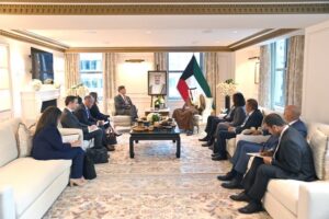 استقبل ممثل سمو أمير البلاد الشيخ مشعل الأحمد الجابر الصباح، سمو ولي العهد الشيخ صباح خالد الحمد الصباح، نائب وزير الخارجية في الولايات المتحدة الأمريكية كريستوفر لاندو في مقر إقامة سموه بمدينة نيويورك في الولايات المتحدة الأمريكية