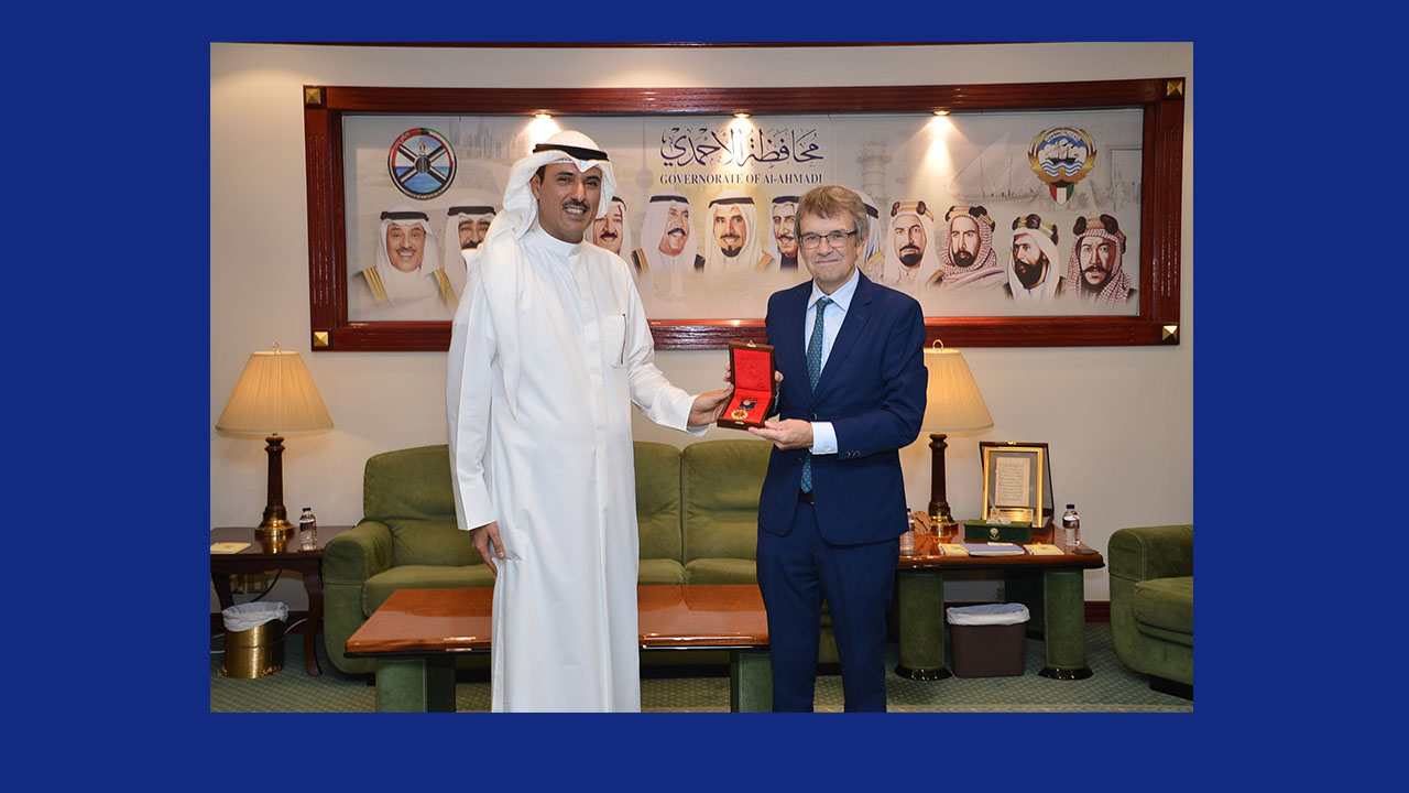 استقبل محافظ الأحمدي الشيخ حمود جابر الأحمد الصباح، بمكتبه فـي ديوان عام محافظة الأحمدي صباح اليوم الثلاثاء” ،سفير مملكة إسبانيا لدى دولة الكويت السفير مانويل إرنانديث غمايو .