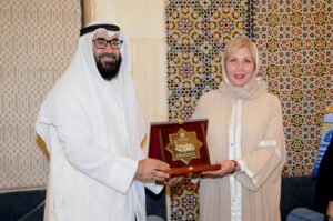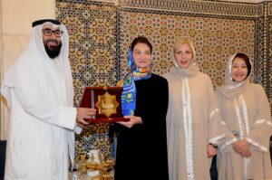 وفي ختام الزيارة قامت ماريكا كوشلامازاشفيلي بتسجيل كلمة شكر في سجل التشريفات عبّرت فيها عن امتنانها لحفاوة الاستقبال واهتمام إدارة المسجد وفي مقدمتها مدير ادارة المسجد الكبير الدكتور بدر معجون الضفيري كما قدمت درعين تذكاريين من مجموعة المرأة الدولية إلى الدكتور الضفيري، والى ريم محمد الغنيم، رئيس قسم الزيارات.