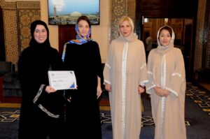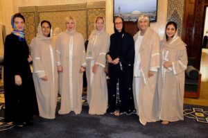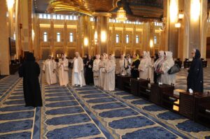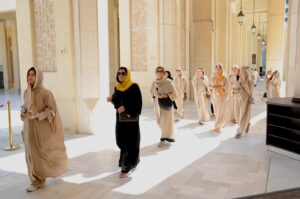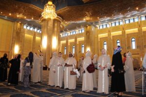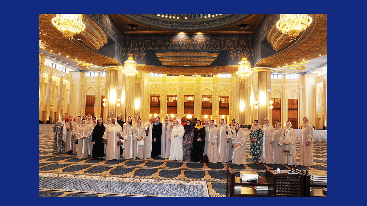 واستمتعت المشاركات بجولة تعريفية داخل المسجد، حيث تعرفن على تاريخه المميز وأهميته المعمارية إذ تم تصميمه بمزيج من الطراز الأندلسي والشرقي، وفق تراث معماري إسلامي تقليدي والذي يجمع بين الفخامة والروحانية.