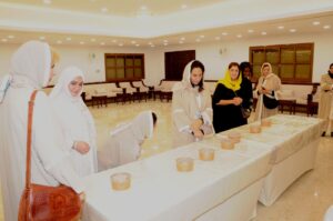 وقامت فاطمة الفلاح بعرض موجز حول أنشطة المسجد واهمية دوره فى نشر الثقافة الاسلامية والكويتية . ثم قامت العضوات بزيارة معرض الفنون للخط العربي، حيث استمتعن بالتعرف على مجموعة من الأعمال الفنية التي تجسد جماليات هذا الفن العريق وأصالته.