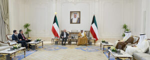 حضر اللقاء رئيس ديوان سمو ولي العهد الشيخ ثامر جابر الأحمد الصباح، والمدير العام لهيئة تشجيع الاستثمار المباشر الشيخ الدكتور مشعل جابر الأحمد الصباح والعضو المنتدب للهيئة العامة للاستثمار الشيخ سعود سالم عبدالعزيز الصباح.