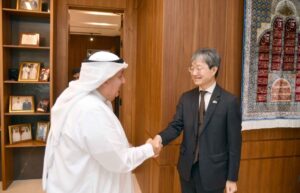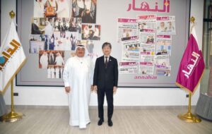 استقبل  الزميل عماد بوخمسين رئيس تحرير جريدة النهار في مكتبه السفير الياباني لدى دولة الكويت  موكاي كينيتشيرو بحضور رئيس تحرير مجلة بريق الدانة رابعه الجمعة ونائب رئيس تحرير النهار سامي النصف