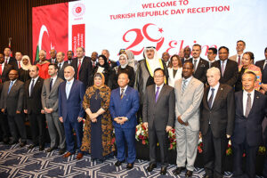 وأضافت السفيرة سونمز في كلمة لها خلال احتفالية أقامتها السفارة التركية بمناسبة مرور 102 عام على إعلان الجمهورية بحضور وزير الصحة الدكتور أحمد العوضي وعدد من المسؤولين ورؤساء البعثات الدبلوماسية أن العلاقات بين البلدين بلغت في السنوات الأخيرة مستوى مثاليا من التعاون الإقليمي والتفاهم الاستراتيجي بفضل القيادة الحكيمة للبلدين.