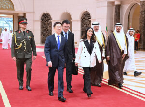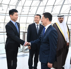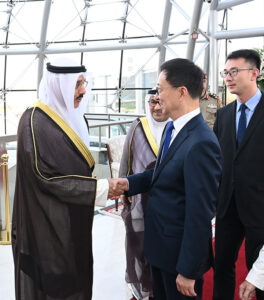 وكان في استقباله على أرض المطار وزيرة الأشغال العامة رئيسة بعثة الشرف المرافقة الدكتورة نورة المشعان ومساعد وزير الخارجية لشؤون آسيا السفير سميح جوهر حيات وسفير دولة الكويت لدى الصين جاسم إبراهيم الناجم.