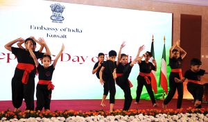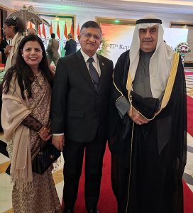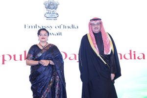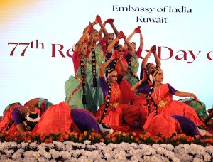 اقامت سفيرة جمهورية الهند لدى البلاد براميتا تريباثي حفل استقبال بمناسبة بمناسبة الذكرى الـ 77 ليوم الجمهورية الهندية بحضور وزير الكهرباء والماء والطاقة المتجددة ووزير المالية ووزير الدولة للشؤون الاقتصادية والاستثمار بالوكالة د.صبيح المخيزيم ومساعد وزير الخارجية لشؤون آسيا السفير سميح جوهر حيات ووكيل وزارة الدفاع الشيخ الدكتور عبد الله مشعل العبد الله الصباح وعدد من السفراء ورؤساء البعثات الدبلوماسية المعتمدة لدى البلاد والشخصيات العامة.