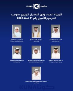 صدر مرسوم أميري رقم 11 لسنة 2026 بالتعديل الوزاري التالي: