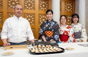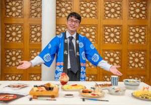 وعلى هامش حفل الاستقبال قدمت السفارة اليابانية للضيوف مجموعة من المأكولات اليابانية بما في ذلك لحم الواغيو الياباني والمأكولات البحرية لتتيح للحضور فرصة التعرف على الثقافة والطعام الياباني .
