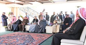 بحضور حضرة صاحب السمو أمير البلاد الشيخ مشعل الأحمد الجابر الصباح حفظه الله ورعاه وسمو ولي العهد الشيخ صباح خالد الحمد الصباح حفظه الله ومعالي رئيس مجلس الوزراء بالإنابة الشيخ فهد يوسف سعود الصباح وأسرة آل الصباح الكرام أقام معالي الشيخ علي جابر الأحمد الصباح مأدبة غداء على شرف سموه رعاه الله وذلك في مزرعة (عزايز) بمنطقة العبدلي.