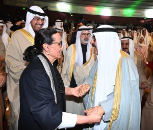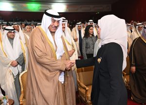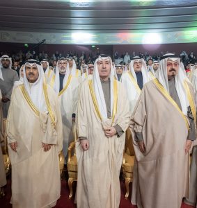 وشهد الحفل سمو ولي العهد الشيخ صباح خالد الحمد الصباح حفظه الله وسمو الشيخ أحمد عبدالله الأحمد الصباح رئيس مجلس الوزراء وكبار المسؤولين بالدولة.