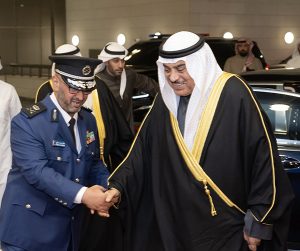 حيث كان في استقبال سموه، رعاه الله، النائب الأول لرئيس مجلس الوزراء ووزير الداخلية الشيخ فهد اليوسف ورئيس قوة الإطفاء العام اللواء طلال الرومي.