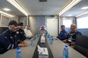 ورافق سموه خلال الزيارة رئيس الهيئة العامة للطيران المدني الشيخ حمود المبارك ورئيس قوة الإطفاء العام اللواء طلال الرومي والمدير العام للشركة الكويتية لتزويد الطائرات بالوقود “كافكو” مشعل التنيب.