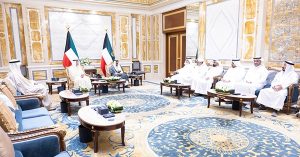 استقبل صاحب السمو الأمير الشيخ مشعل الأحمد النائب الأول لرئيس مجلس الوزراء ووزير الداخلية الشيخ فهد اليوسف، ووزير الدفاع الشيخ عبدالله العلي، وأسر شهداء الواجب المغفور لهم بإذن الله تعالى الرقيب وليد مجيد سليمان، والرقيب عبدالعزيز عبدالمحسن داخل ناصر من منتسبي القوة البحرية بالجيش الكويتي والمقدم ركن عبدالله عماد الشراح والرائد فهد عبدالعزيز المجمد من منتسبي الإدارة العامة لأمن الحدود البرية بوزارة الداخلية والذين استشهدوا أثناء قيامهم بواجبهم الوطني في إطار المهام الوطنية المنوطة بهم في التصدي والردع للاعتداء الإيراني الآثم على الكويت.