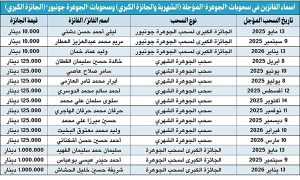 وأوضح أن السحوبات المؤجلة، التي تجاوز عددها 60 سحبا بقيمة إجمالية تجاوزت 5 ملايين دينار كويتي، أجريت على مدى 5 أيام عمل خلال الفترة من 1 إلى 7 أبريل 2026، بما في ذلك الإعلان عن ثلاثة فائزين بمليون دينار لكل منهم في سحوبات الجوهرة الكبرى عن أشهر: مايو 2025، سبتمبر 2025، ويناير 2026.