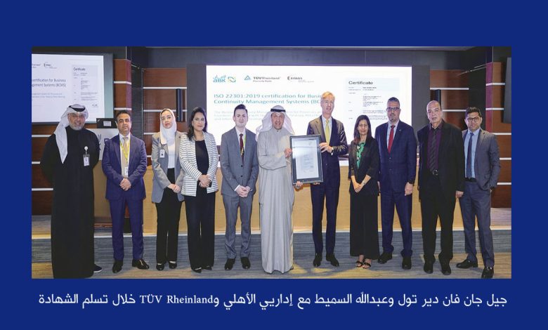 «الأهلي» ينال شهادة الآيزو العالمية في إدارة استمرارية الأعمال