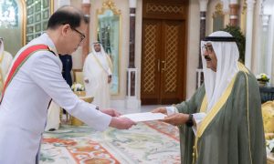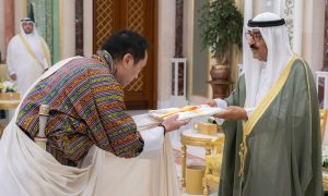 احتفل اليوم بتسلم حضرة صاحب السمو أمير البلاد الشيخ مشعل الأحمد الجابر الصباح حفظه الله ورعاه أوراق اعتماد كل من السفير بوب دورجي سفيرا لمملكة بوتان والسفير سوليني سعيد سفيرا لبروناي دار السلام والسفير بارميتا تريباثي سفيرا لجمهورية الهند والسفير يانغ شين سفيرا لجمهورية الصين الشعبية والسفير سونغتشاي تشايباتييوت سفيرا لمملكة تايلند وذلك كسفراء لبلادهم لدى دولة الكويت.