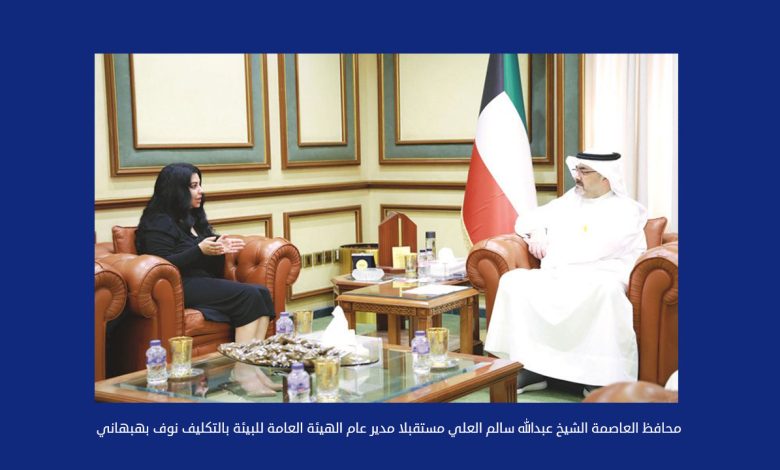 استقبل محافظ العاصمة الشيخ عبدالله سالم العلي، في مكتبه بديوان عام محافظة العاصمة، ، مدير عام الهيئة العامة للبيئة بالتكليف نوف بهبهاني، وذلك في إطار تعزيز التعاون المشترك وتكثيف الجهود لحماية البيئة وتحقيق الاستدامة في مختلف مناطق المحافظة.